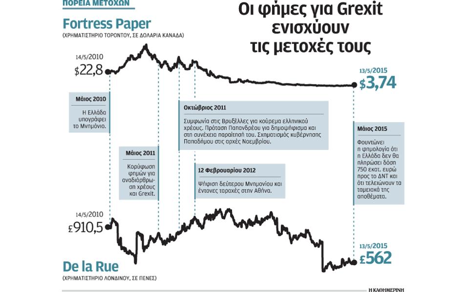 συνδεθεί με τη φημολογία περί Grexit είναι η βρετανική De la Rue. Ωστόσο